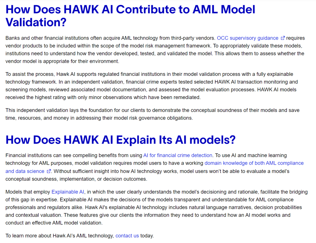 We produced this post to call attention to a key USP, truly Explainable AI, and how it supports a crucial process for customers in a strategically vital market, the US.