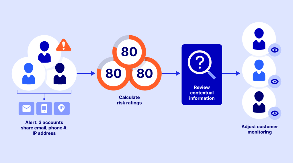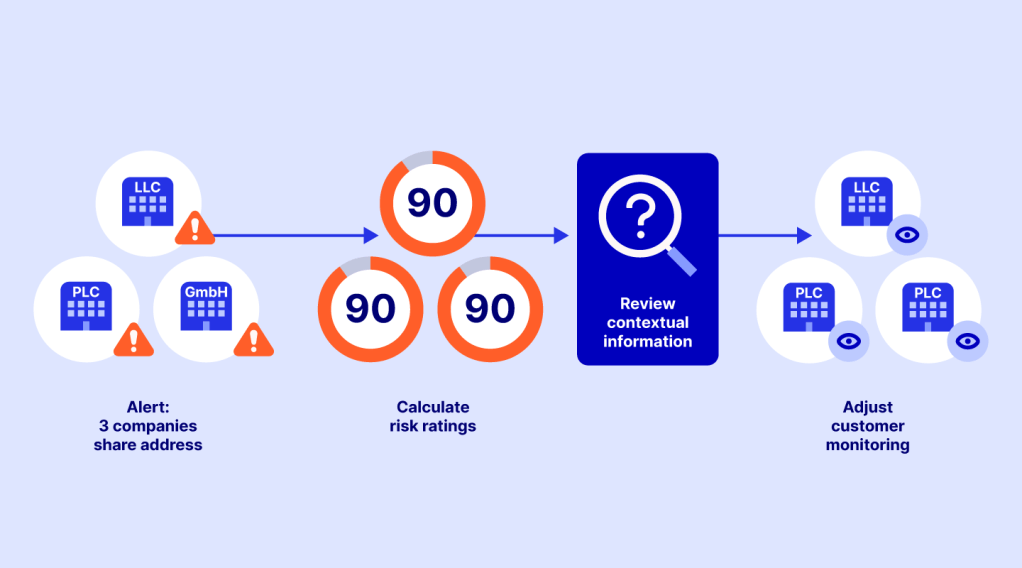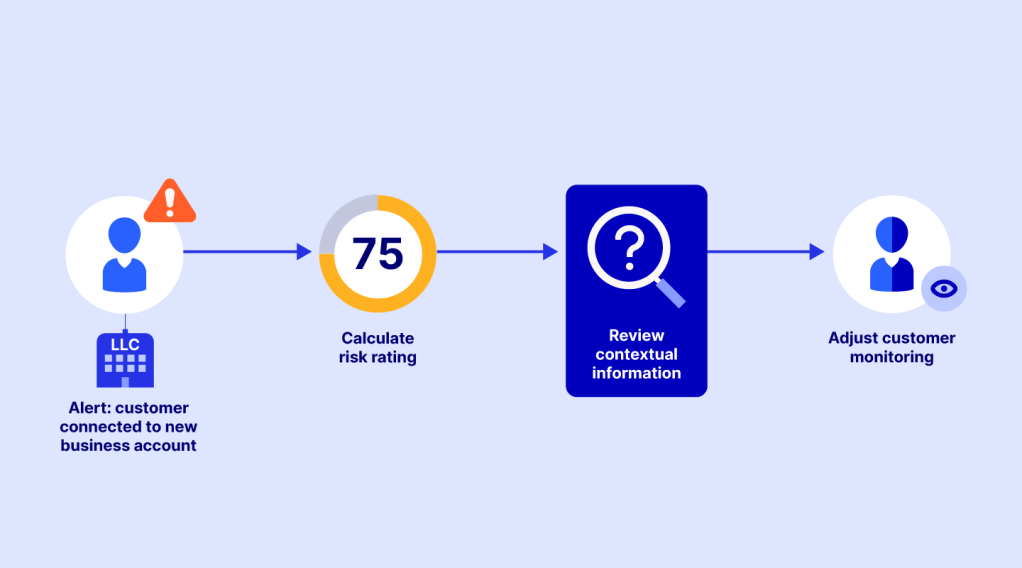 I coordinated with a subject matter expert from the c-suite to create these infographics. They illustrate the process flow for four different entity risk detection use cases.