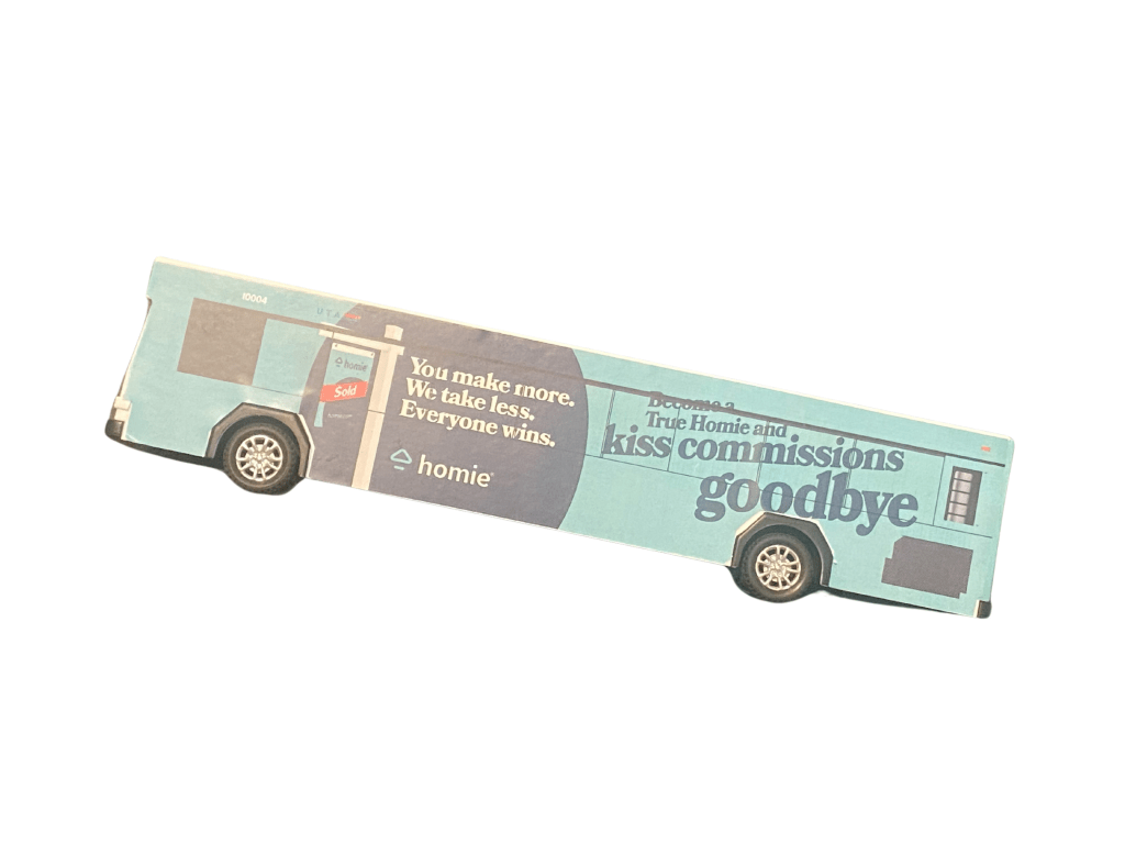 On Side B, we referenced a tradition at Logan’s Utah State University, becoming a “True Aggie.” To become a True Aggie, USU students kiss on The Block A at midnight during a full moon. We put a branded spin on this. We also made a (literally) tongue-in-cheek joke based on our value prop, a flat-fee real estate commission model.